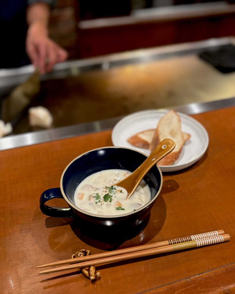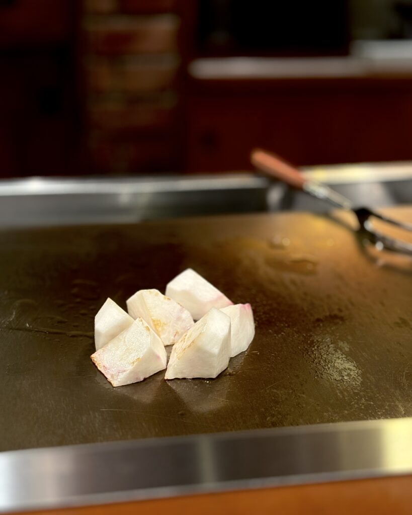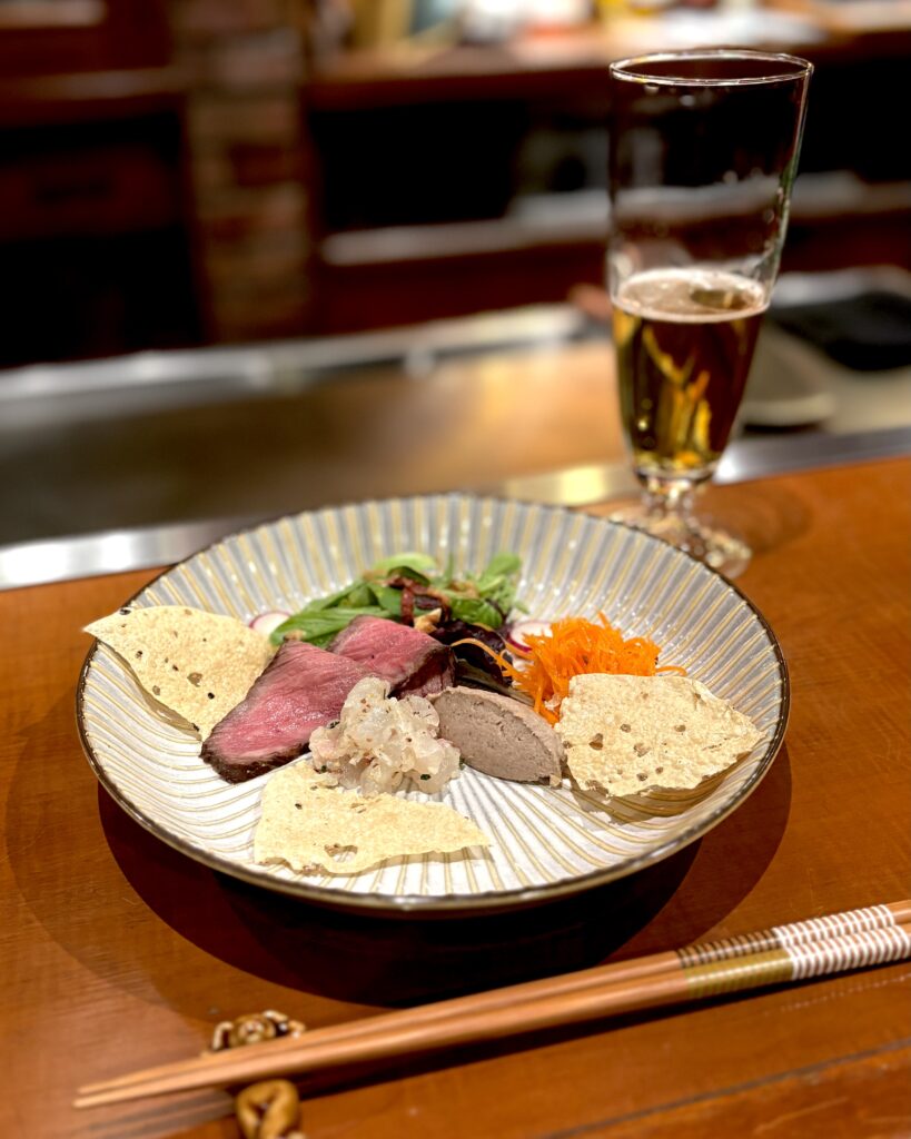 カウンター席の目の前にある鉄板で調理されるステーキをはじめとした新鮮な旬の食材を使ったお料理は、どれも「ここでしか味わえない一皿」。