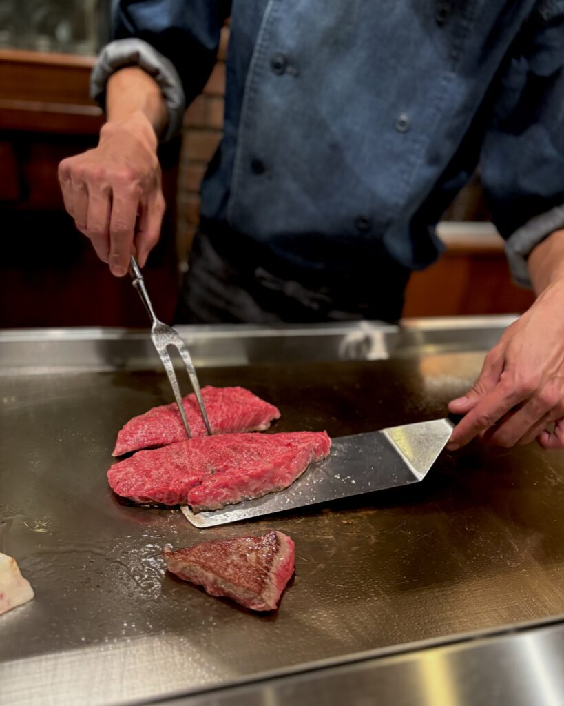 ランチは熟成の旨みが際立つビンテージビーフを、そして夜は比婆牛の鉄板ステーキをいただくことができます。