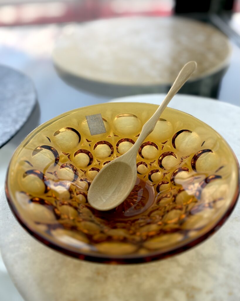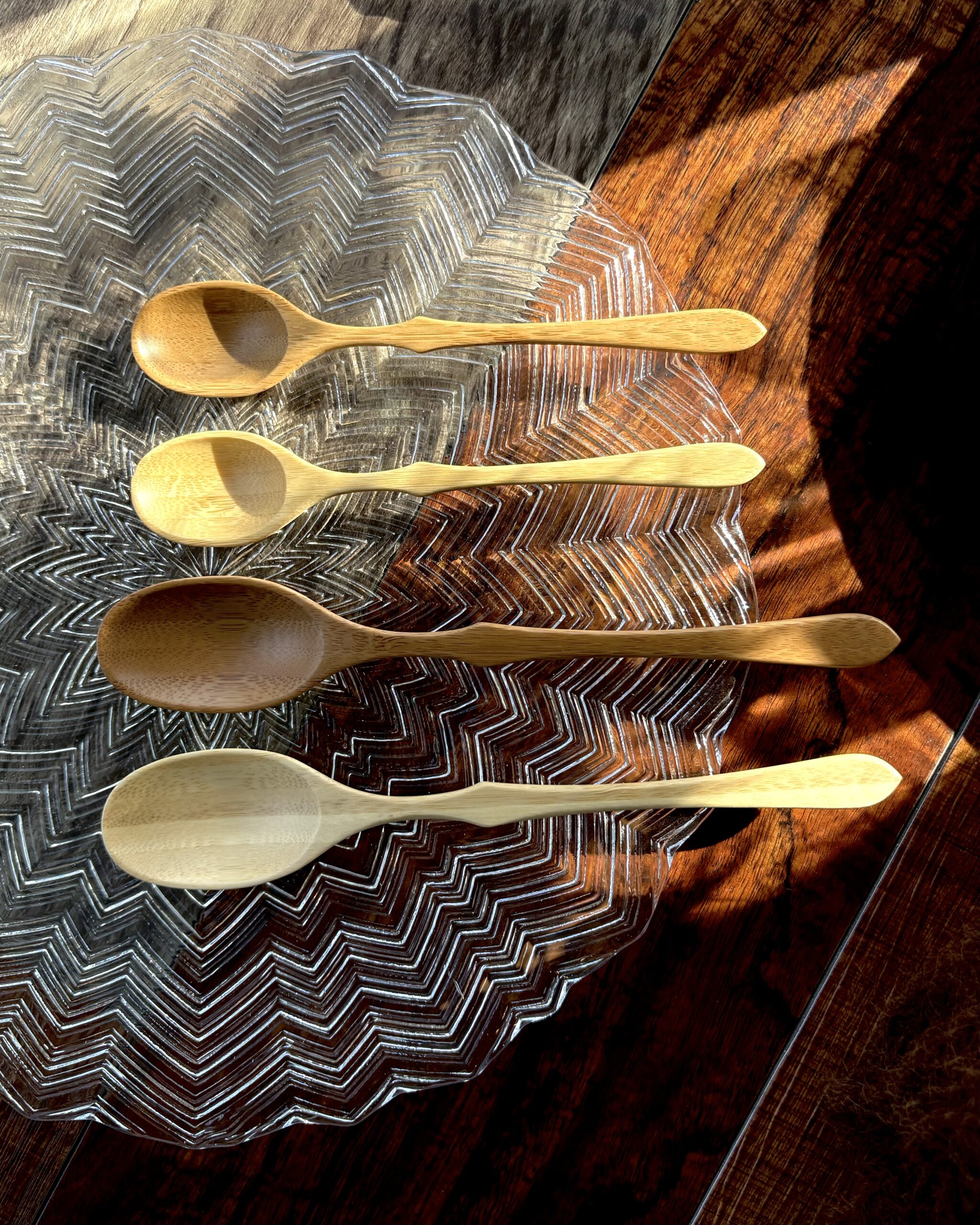 そのため、ガラス製の器には、木製のカトラリーがオススメです。